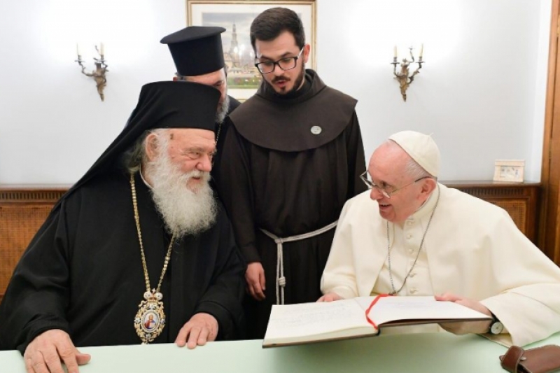 A través de un comunicado publicado la tarde del 5 de diciembre, en el marco del viaje apostólico a Grecia, la Oficina de Prensa de la Santa informa que Su Beatitud Jerónimo II, arzobispo de Atenas y primado de la Iglesia Ortodoxa Autocéfala de Grecia, llegó a la Nunciatura a las 18:50 horas (hora local) para realizar una visita de cortesía al Papa Francisco, con sus respectivas comitivas, que tuvo lugar en la sala y finalizó hacia las 19:20 de la tarde.