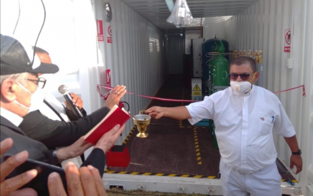 ElectroDunas, empresa eléctrica de Ica, aceptó que la planta estuviera unida a ellos y así dar la electricidad gratis y el uso del terreno, así como cuidar el mantenimiento de la planta. Con todo montado y tras haber hecho las primeras pruebas, se determinó la inauguración y bendición el día 23 de noviembre. Me invitaron a ese acto. No podía aceptar por ser persona en riesgo de Covid. Pero me ofrecieron ponerme carro particular sin riesgo para que pudiera estar presente en ese acto. Así fue, gracias una vez más al Sr. Pancho Massa que siempre ha puesto mucho ánimo en esta aventura del oxígeno. Cuando empezábamos la celebración se hizo presente el Señor Obispo y le acompañé en la celebración de la Palabra. Los discursos giraron en torno a que el espíritu de San Vicente había hecho posible esta obra. Por eso todas las agrupaciones habían decidido poner el nombre de SAN VICENTE DE PAUL a la planta que ayudará a salvar muchas vidas en Ica. El representante de la Cámara de Comercio de Ica, Eduardo Ojeda, exalumno vicentino, el presidente de los Agro-exportadores, José Luis Camino Ivanisevich, familia muy ligada al colegio donde estudiaron varios hermanos; la Maestra y exalumna Sarita Falconí Abregú, la exalumna Marianella Weydert Mendoza, madrina de la bendición. Todos ellos marcaron que fue San Vicente, con sus ejemplos, quien les había hecho reaccionar y poner en práctica lo que tantas veces habían oído en el Colegio. Se oyó decir la frase: “Para un Vicentino lo imposible no existe”. Cuando empezamos, muchos nos decían que esto era imposible, que de dónde sacaríamos el dinero, que era una locura. Ahora les decimos a todos los de Ica: aquí tienen la obra que parecía imposible, realizada.