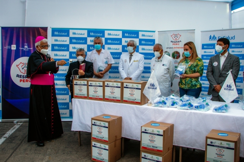 La Conferencia Episcopal Peruana, la Sociedad Nacional de Industrias y la Corporación Educativa San Ignacio de Loyola, entregaron 880 respiradores mecánicos personales (Vortran) al sistema de Seguros Socials (EsSalud) y a la red hospitalaria del Ministerio de Salud gracias al apoyo de empresas privadas en el marco de la campaña “Respira Perú”.