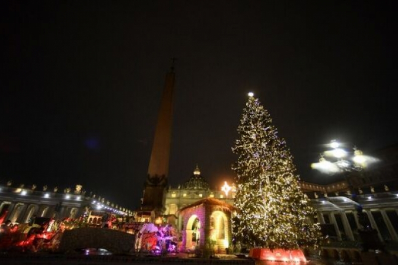 Otra escena sugestiva, en pleno centro de la Plaza de San Pedro, llamó la atención de todos: la iluminación del majestuoso pino de unos 28 metros de altura colocado junto al pesebre. La hermana Raffaella Petrini, secretaria de la Gobernación del Estado de la Ciudad del Vaticano, finalmente dijo que el pesebre y el árbol, en un momento todavía sacudido por la pandemia, nos invitan a contemplar, como también señala el Papa Francisco, la Natividad de Jesús y “para ponernos espiritualmente en el camino atraídos por la humildad de Aquel que se hizo hombre para encontrarse con cada hombre”. La ceremonia finalizó con la canción italiana natalicia, "Tu scendi dalle stelle”, interpretada por la Banda del Cuerpo de Gendarmería.